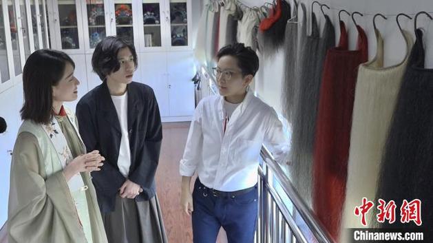京劇名家王珮瑜帶領(lǐng)兩位主播走進上海京劇院。 康玉湛 攝