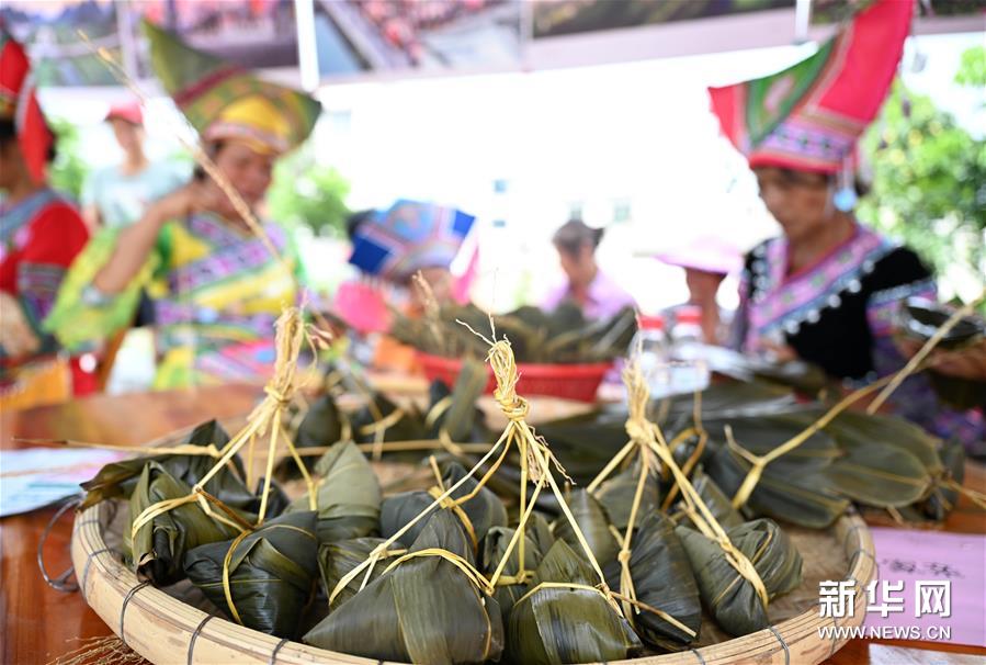6月22日,在廣西柳州市柳江區(qū)進(jìn)德鎮(zhèn)泗浪村紅花屯,村民現(xiàn)場(chǎng)參加包粽子比賽。新華社發(fā)(黎寒池 攝)