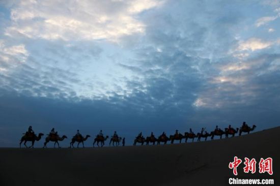 圖為敦煌大漠晨光引客“畫中游”。 張曉亮 攝