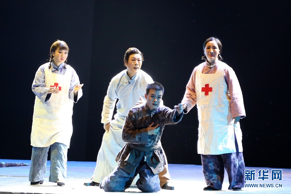 5月30日晚,大型秦腔現(xiàn)代戲《肝膽祁連》在蘭州音樂(lè)廳精彩上演?!陡文懫钸B》以真實(shí)的歷史故事改編,講述了愛(ài)國(guó)民主人士高金城營(yíng)救紅西路軍戰(zhàn)士的感人故事。新華網(wǎng)發(fā)(王晶晶 攝)