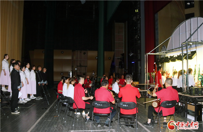 《隴原第一槍》全劇分希望、播火、誆宴、奪槍、功捷5場,演出團(tuán)隊分為前臺演唱組、樂隊伴奏組、影人挑纖組、嘛簧幫唱組,演職人員中有國家級非遺代表性傳承人2人,省級非遺代表性傳承人2人,市級、縣級代表性傳承人近10人,加上隴東音樂學(xué)院學(xué)生共50人參與了演出。