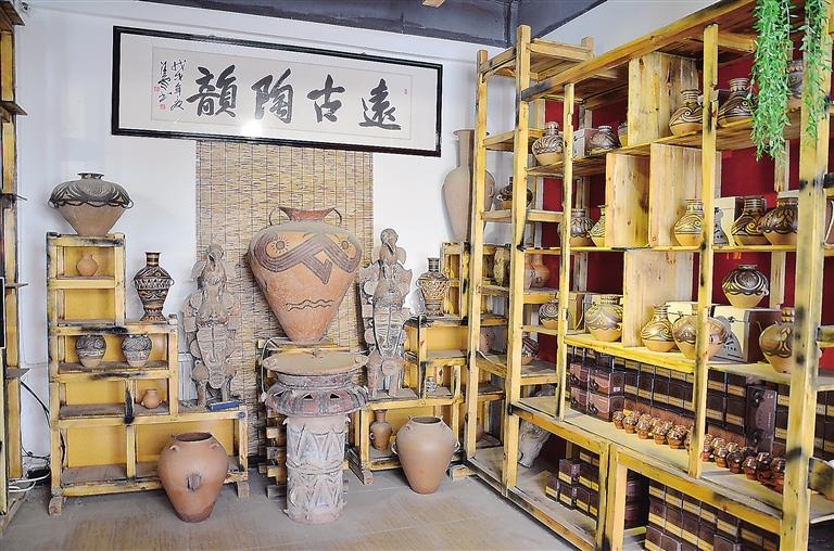 走進(jìn)彩陶藝術(shù)館,目之所及都是造型獨特的仿彩陶罐,在墻上可以看到陶片裝飾的藝術(shù)品,細(xì)節(jié)透著“彩陶之鄉(xiāng)”的文化底蘊。