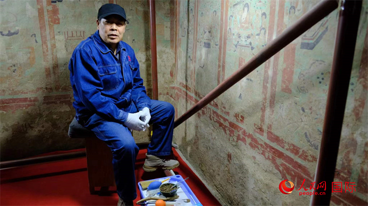 “我從1986年開始在莫高窟工作,今年已經(jīng)35年了。”敦煌研究院文物保護(hù)修復(fù)工作者劉濤說,“辛苦是肯定的,洞窟里面氣溫比較低,有時(shí)候也比較臟。但是最終把破敗的遺跡修復(fù)以后,成就感特別強(qiáng)??吹阶詈蟮某晒?,前面吃的苦都是值得的。”