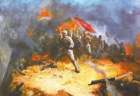 這時(shí)天已拂曉,我們的敢死隊(duì)員,又緊緊追擊潰逃的敵人。敵人如同喪家之犬,一群群沒命地向后跑。暫時(shí)還沒有遭到致命打擊的敵人,見成群的敗兵亂竄,也不敢射擊了。沿路丟的槍械子彈不計(jì)其數(shù)。我們的戰(zhàn)士越追越有勁,疲勞、饑餓早已丟在一邊。有的追著追著,嫌自己身上背的手榴彈太重,就干脆擱在一邊,手擎大刀往前追趕。我們一口氣直追擊到敵人的營房、倉庫,占領(lǐng)了臘子口的縱深陣地。不一會(huì)兒,一、二連也從山上繞道過來。他們面帶勝利的歡笑,大聲地對我們說:“同志們,天險(xiǎn)的臘子口被我們砸開了!”