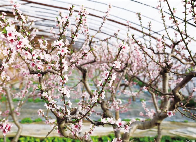 在無(wú)雪數(shù)九過(guò)冬的日子里,葫蘆河畔那座座大棚內(nèi)油桃花開得正艷,在返回的路上,我殷切盼望著一場(chǎng)場(chǎng)瑞雪的蒞臨,棚外白茫茫的干凈一片,棚內(nèi)紅彤彤的絢爛一團(tuán)——隴右寒冬臘月降瑞雪,大棚滿枝桃花鬧春意。