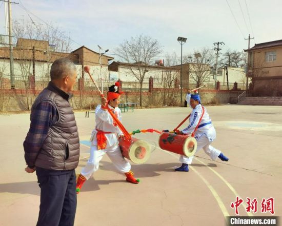 春寒料峭,中新網(wǎng)記者走進蘭州市榆中縣金崖鎮(zhèn)陸家崖村,帶隊女子太平鼓隊近30年的陸鵬飛指導隊員訓練?!堟骸z