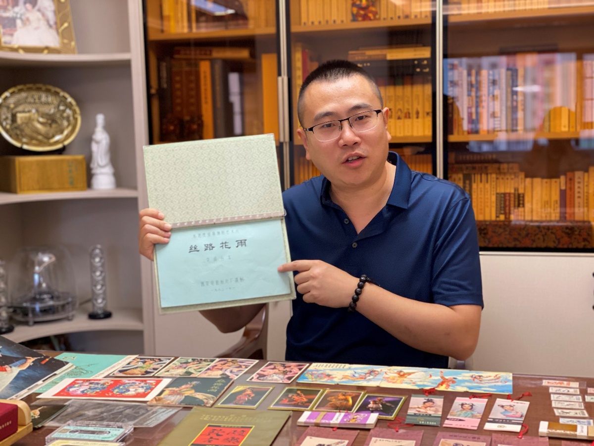 在陳曉斌的工作室,有舞劇初創(chuàng)劇本、編導(dǎo)手稿、舞美設(shè)計(jì)原稿和初始錄音,意大利演出宣傳冊、日本公演手冊、泰國演出節(jié)目單、西安電影制片廠電影臺本、年歷卡、年畫、小人書、明信片、火柴盒等藏品,這些都被他視若珍寶。