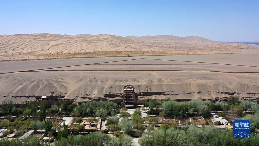 這是4月18日拍攝的莫高窟窟區(qū)(無(wú)人機(jī)照片)。新華社記者 陳斌 攝