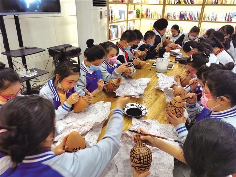 孩子們?cè)谥v解員的帶領(lǐng)下,首先參觀了彩陶館,了解原始先民們繪制彩陶的紋飾類型,體驗(yàn)遠(yuǎn)古文明,隨后在小陶罐上畫出了屬于自己的彩陶,沉浸式體驗(yàn)了一回歷史的沉淀。在依據(jù)《金城攬勝圖》建造的清代蘭州城的沙盤前,著名史志專家鄧明老師與孩子們一起探尋了蘭州城的前世今生。同時(shí),“知識(shí)闖關(guān)、拼圖游戲”等活動(dòng)也在線上舉行。其中,市博館藏珍品《東漢墨跡紙》還亮相了迅雷鏈數(shù)字藝術(shù)品收藏平臺(tái)非同數(shù)藝,致敬“博物館的力量”。