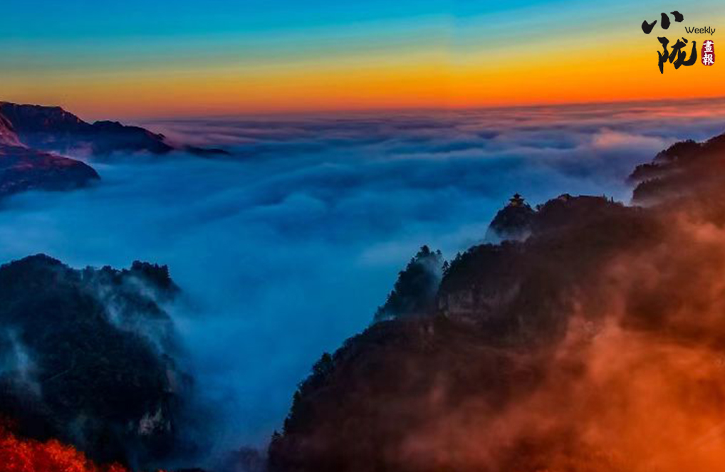 雪霽,登臨崆峒,望旭日東升,彩霞映紅山間,云霧隨風(fēng)翻滾,像云彩縹緲,纏繞在山腰之間,彌漫開(kāi)來(lái),又如一條仙女的白絲帶……絢麗而有詩(shī)意。