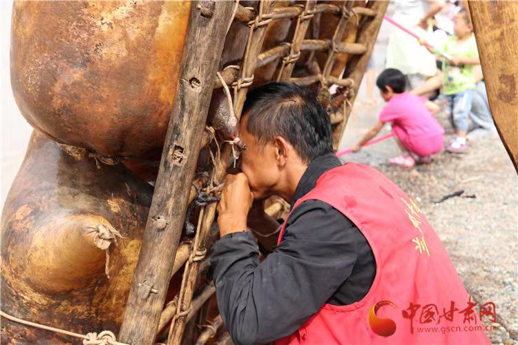 現(xiàn)在黃河蘭州段上常見的是以13只羊皮胎扎成,可坐五六人的小筏,供游人體驗黃河漂流。羊皮筏子作為蘭州黃河文化的重要組成部分,“吹羊皮,渡黃河”變成了游客時尚的旅游體驗。