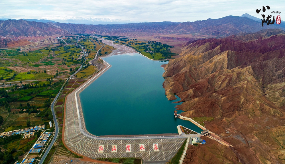 紅山灣水庫與丹霞國家地質公園山水相映,展現了“戈壁水鄉(xiāng)”的生態(tài)和諧新形象。