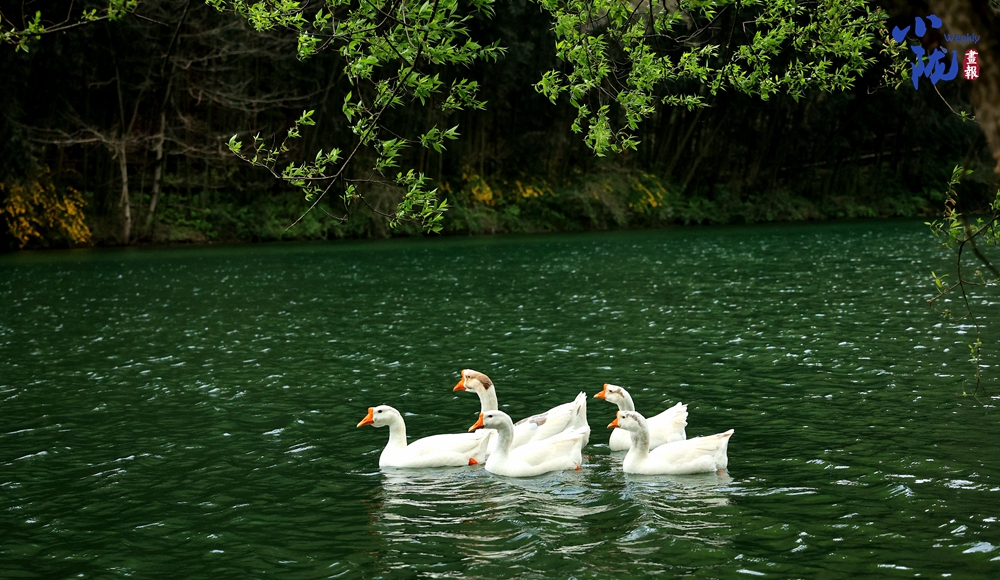 一群群鴨子在清澈的溪水中嬉戲,絡(luò)繹不絕的游人無不沉醉在山水之中。