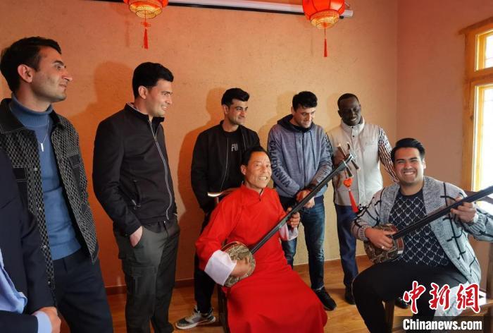 圖為5月9日,外籍游客體驗三弦伴奏的“涼州賢孝”。 戴文昌 攝