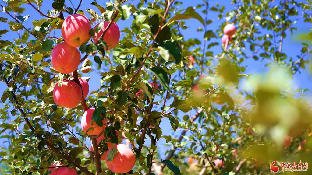 靜寧蘋果熟了!”當(dāng)下,靜寧縣的蘋果陸續(xù)成熟進(jìn)入采摘期,放眼望去,滿山的蘋果樹(shù)郁郁蔥蔥、枝繁葉茂,摘下果袋,一顆顆“金蛋蛋”俏耀枝頭,香氣四溢。此時(shí)隨處可見(jiàn)忙碌在果園地頭的果農(nóng),取袋、采收……處處一派繁忙景象。