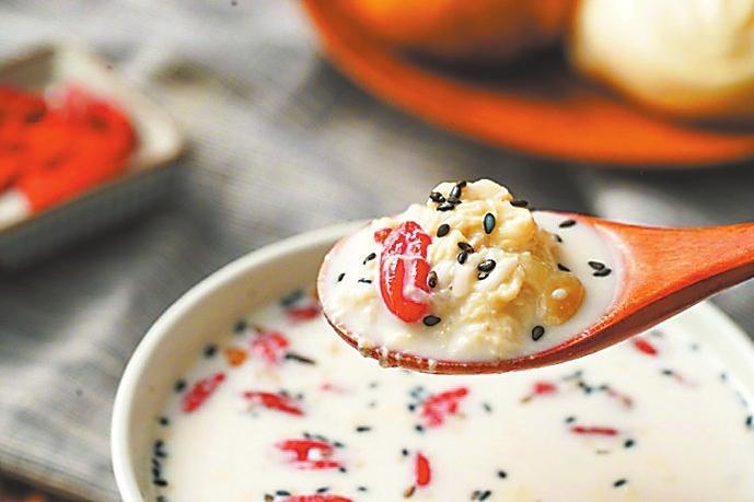 在蘭州,牛奶雞蛋醪糟經(jīng)過(guò)不斷的發(fā)展變化,在制作中精益求精,味道、花色、品種上追求更適合廣大美食者需求的味道。黃白相間,牛奶和雞蛋,還有醪糟的味道完美結(jié)合,一碗香甜可口的牛奶雞蛋醪糟,看上去表層漂著各種干鮮配料,色彩斑斕,熱熱地喝一口,真是回味悠長(zhǎng)。