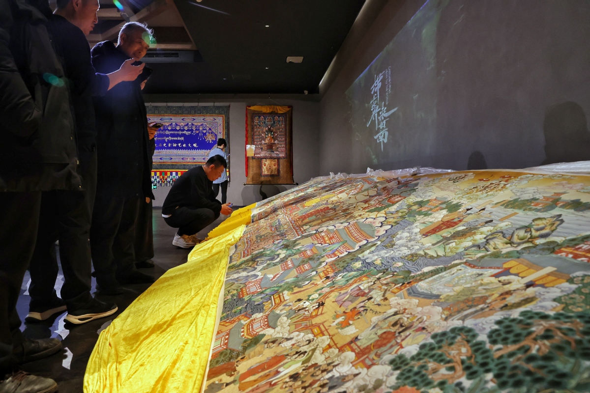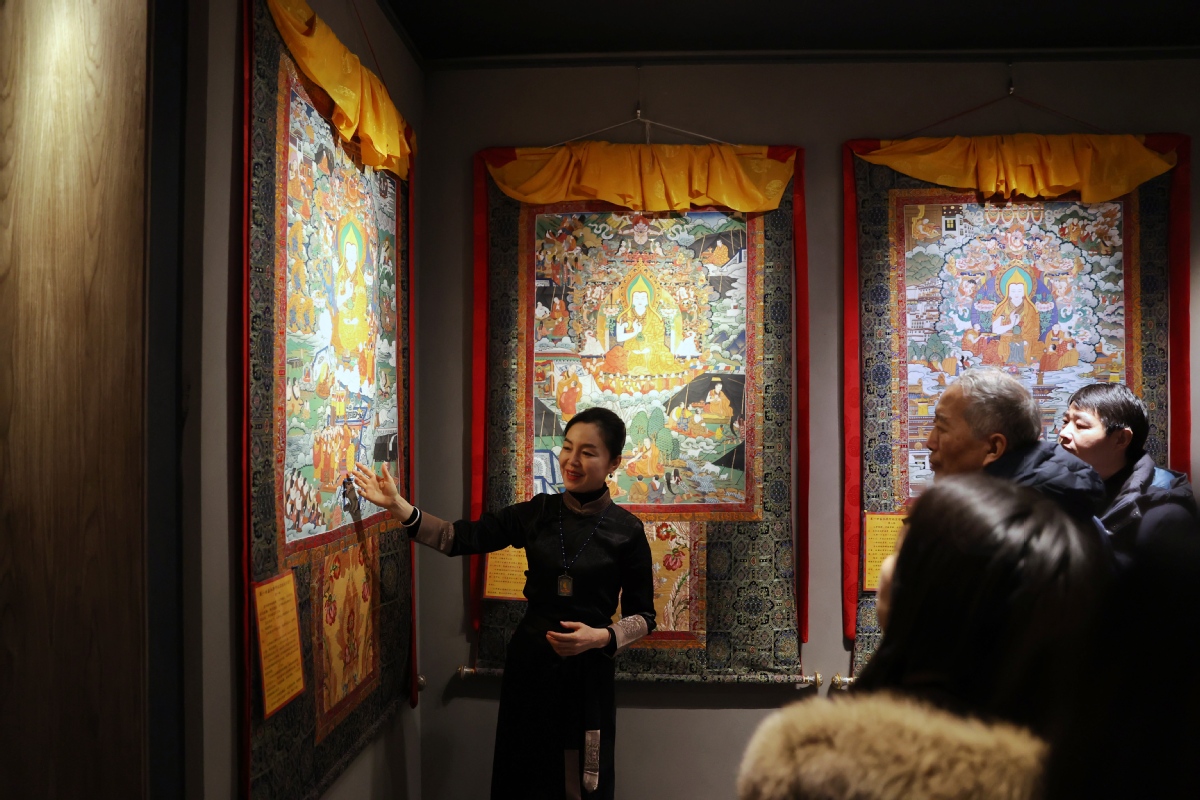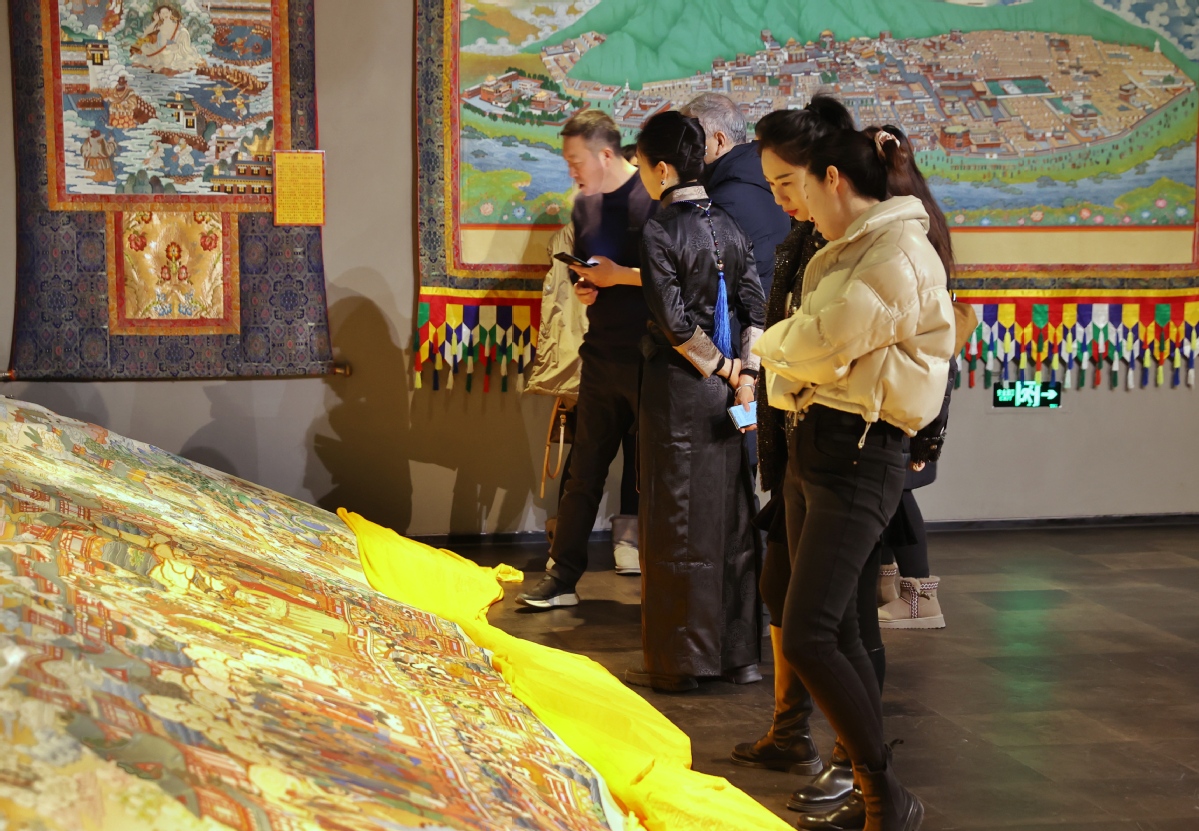 ?。ㄓ浾?nbsp;姜東)2023年12月26日,北京,觀(guān)眾在皇城藝術(shù)館參觀(guān)《甘肅甘南非遺文化藝術(shù)展》。近日,《甘肅甘南非遺文化藝術(shù)展》在北京皇城藝術(shù)館開(kāi)展。此次展覽主要展示了甘南藏族自治州非物質(zhì)文化遺產(chǎn)藝術(shù)作品《拉卜楞文化歷史彩繪藝術(shù)大觀(guān)》《藏族書(shū)法瑰寶》及甘南拉卜楞文創(chuàng)產(chǎn)品。