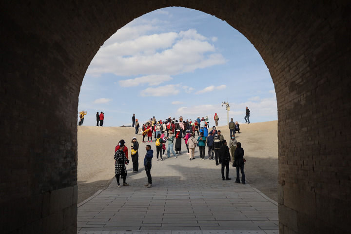 2023年5月10日,游客在嘉峪關(guān)關(guān)城景區(qū)游玩。 新華社每日電訊記者 馬希平 攝