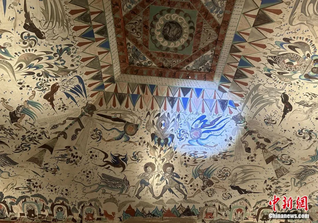 敦煌莫高窟第285窟(原大復(fù)制窟)窟頂?shù)姆恕⑴畫z圖像。丁思 攝