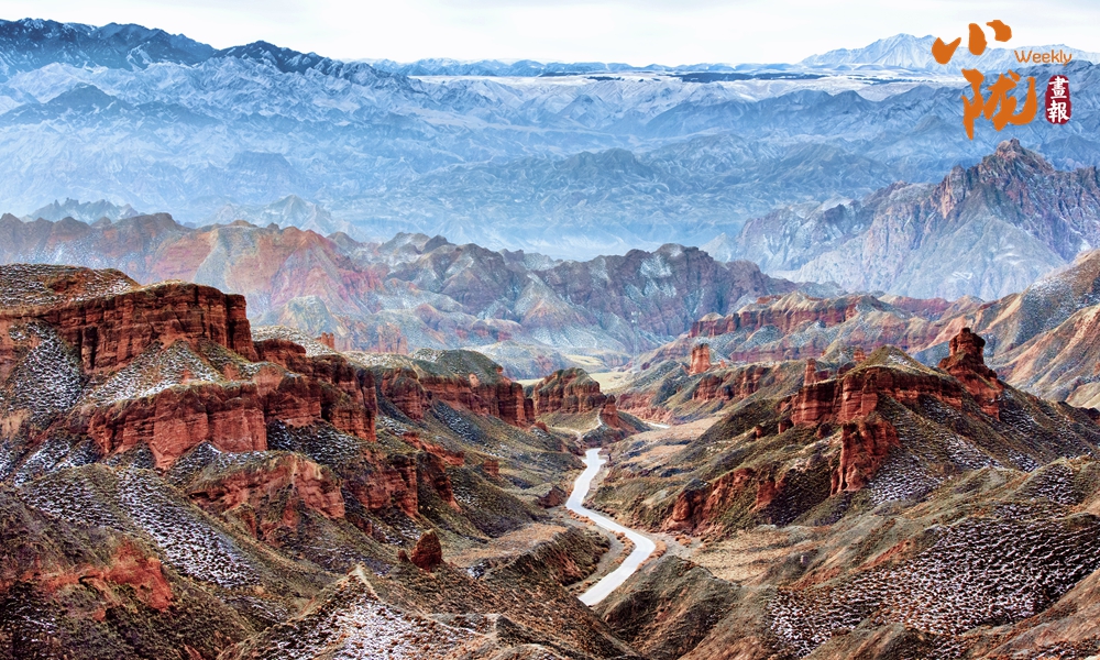 雪后初晴,紅色的山體與潔白的積雪交相輝映,丹霞奇觀在冬雪的映襯下宛如仙境,蔚為壯觀。