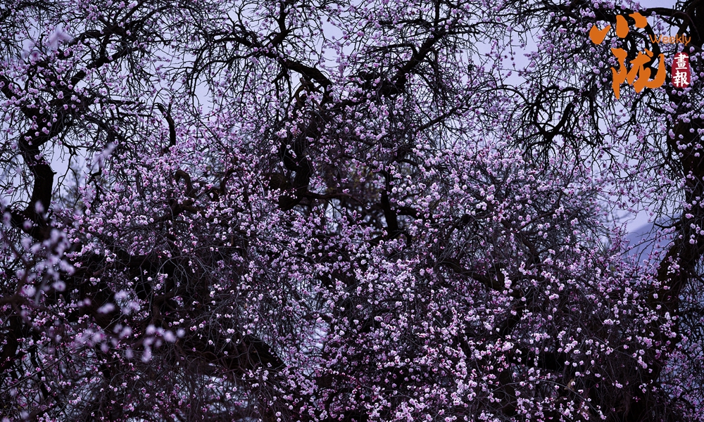 大面積杏樹(shù)應(yīng)季綻放,將一片片大地披上春天的“盛裝”,紫色的杏花,為大地寫滿了詩(shī)行,編織出一幅美麗的鄉(xiāng)村畫卷。