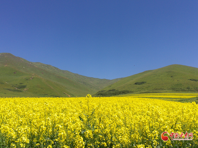 大山深處,秋風(fēng)嬉戲,藍(lán)天澄碧,大地金黃,白云悠然。蜂鳴,蝶舞,花香混合著泥土的芬芳,天地猶如一幅散著金光的風(fēng)景畫,渾然一體,如夢(mèng)似幻。赤腳踩在綠油油的嫩草上,癢癢的,柔柔的,酥酥的。如母親的懷抱,舒適而安寧?;ê8呛⒆觽兊奶焯?,在里面打滾,摔跤,捉迷藏……揮灑無邪的童真。這時(shí),或在花間嬉戲,或在花徑漫步,或在山野奔跑,或干脆在觸手可及的藍(lán)天白云下,枕著花香,靜靜一眠,把自己放逐在原野上,身心兩忘,回歸一個(gè)沒有謊言的世界。安靜,正如無邊無際的虛空;澄澈,又像一望無垠的凈土。清新的空氣,寂靜的原野,一切都是那么凈,靜。一切都融入自然,回歸純真。圣潔,澄凈,忘世,忘機(jī),忘我,又那么浪漫。油菜開始開花。一開始是綠葉叢中一點(diǎn)黃,就好像是綠色的海洋里揚(yáng)著黃色的一桅風(fēng)帆。接著是倆桅三桅……有一天你會(huì)發(fā)現(xiàn)綠色的海洋消失了,取而代之的是一片金黃色的閃著耀眼光芒的海平面。微風(fēng)過處,黃色的波濤此起彼伏,后浪推著前浪。有蜜蜂在花間穿梭,時(shí)而飛起,時(shí)而停在花蕊中辛勤地采著花粉,工作間隙還不忘嗡嗡地哼著歌。蝶兒翩翩飛舞在花海,兒童急急追蝴蝶。好一幅“兒童急走追黃蝶,飛入菜花無處尋”的畫面。白色蝶兒猶如黃色海面上飄著的白云,黃色蝶兒歇息在花的枝頭,你分不清是蝶兒變成了花還是花變成了蝶兒。山區(qū)的油菜花和川區(qū)的油菜花又有著迥然不同的風(fēng)采。