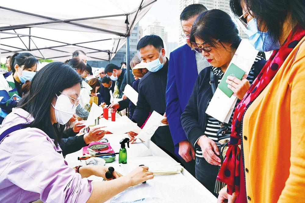 活動現(xiàn)場,甘肅省圖書館的工作人員帶領(lǐng)讀者體驗(yàn)傳拓之美。 新甘肅·甘肅經(jīng)濟(jì)日報(bào)記者 瞿娟 攝