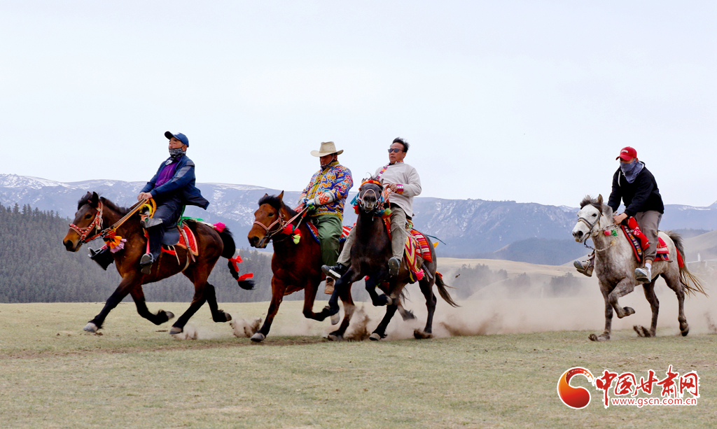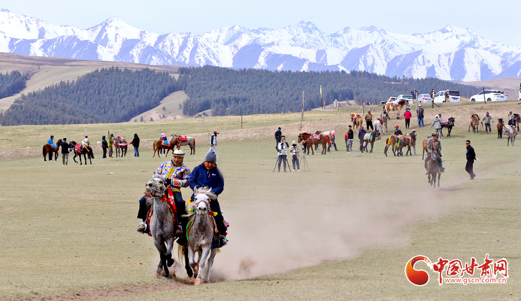 “五一”假期,甘肅省張掖市肅南裕固族自治縣康樂(lè)草原景區(qū)“民族大團(tuán)結(jié)”賽馬活動(dòng)拉開(kāi)帷幕,騎手們?cè)谄钸B山下的康樂(lè)草原上展開(kāi)了民族走馬、速度賽馬角逐,吸引了眾多游客前往觀賞賽馬和領(lǐng)略雪山、森林、草原為一體的祁連山美麗景色。