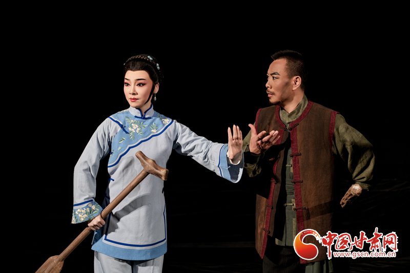 值得一提的是,演員的舞臺(tái)表演融入了“地游子步”“側(cè)身搖晃”等隴劇特有的身段和表演樣式,彰顯出濃濃的隴劇藝術(shù)特色。