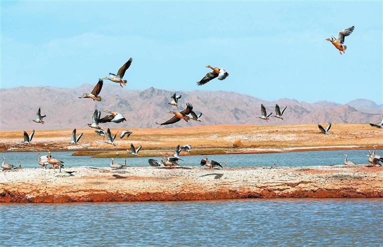 近年來,經(jīng)過當?shù)赜嘘P(guān)部門和甘肅鹽池灣國家級自然保護區(qū)的有效治理和保護,野生動物種群逐漸增多。每年遷徙至此繁衍生息的鳥類種群和數(shù)量不斷增加,時常上演萬鳥翔集的壯觀場景,勾勒出一幅和諧壯美的大自然畫卷。