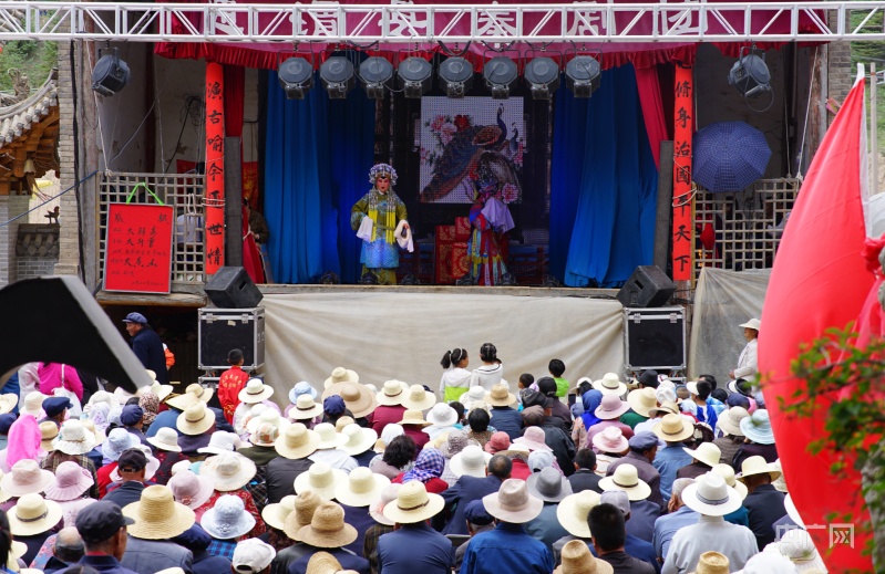 精彩的秦腔演出吸引群眾觀看(央廣網(wǎng)發(fā) 魏國江 攝)