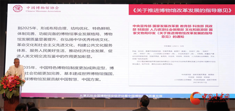 交流會上,中國博物館協(xié)會理事長劉曙光作了《從第五批全國博物館定級評估看中國博物館高質(zhì)量發(fā)展》的主旨發(fā)言,中央廣播電視總臺《簡牘探中華》節(jié)目總導演馬洪濤,中國建筑西北設計研究院有限公司副總經(jīng)理靳江,深圳市藝博堂數(shù)字文化科技集團有限公司總經(jīng)理鄭洵,甘肅簡牘博物館副館長楊眉分別進行了主題分享,為甘肅省博物館事業(yè)的高質(zhì)量發(fā)展建言獻策。