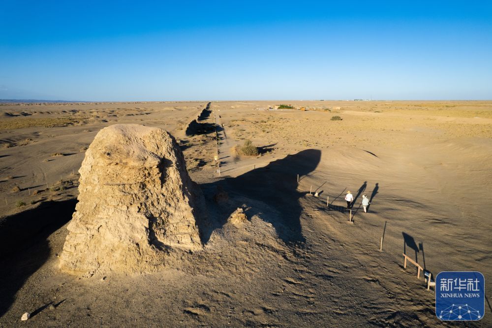 ↑這是張吉全和聞春瑜夫婦負(fù)責(zé)巡護(hù)的一段漢長城遺址(7月16日攝,無人機(jī)照片)。