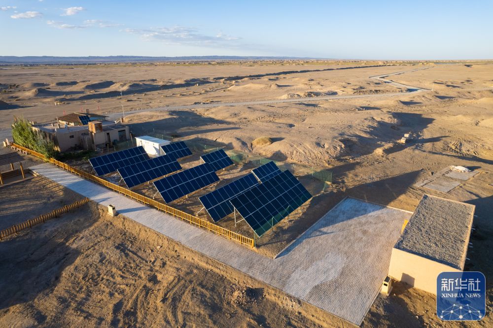 ↑這是張吉全和聞春瑜夫婦工作生活的漢長城文物保護(hù)管理用房(7月16日攝,無人機(jī)照片)。