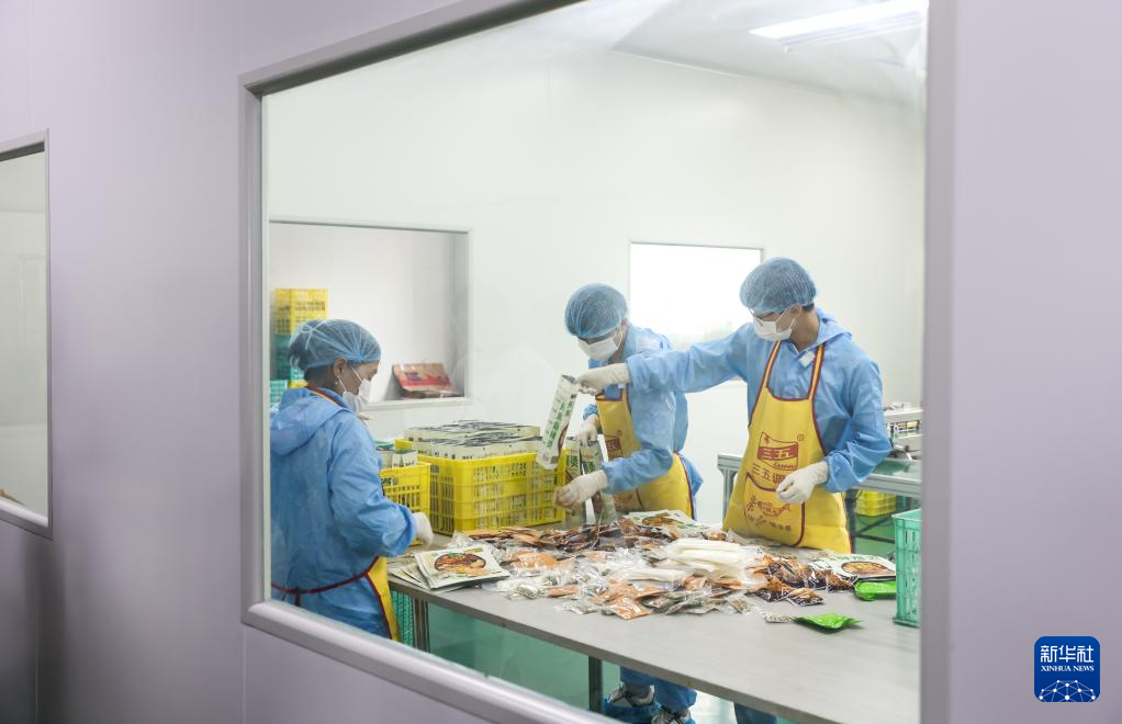 7月22日,工作人員在甘肅天水市一家麻辣燙企業(yè)車間內包裝產品。新華社記者 呂帥 攝