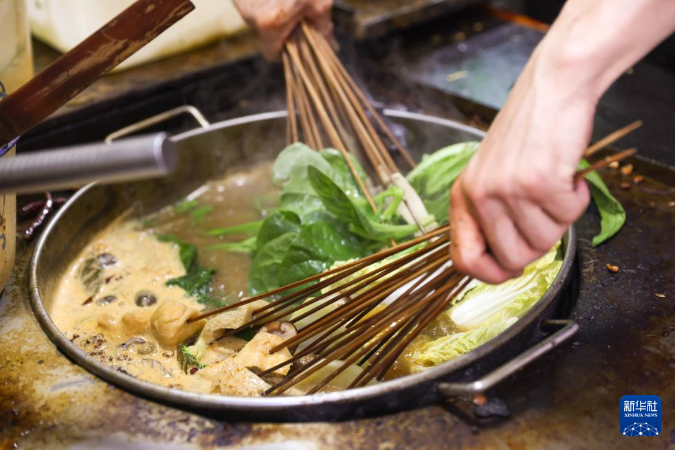 7月22日,工作人員在甘肅天水市名優(yōu)小吃城的一家店鋪制作麻辣燙。新華社記者 呂帥 攝