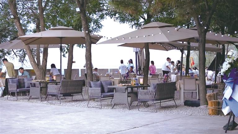 除了優(yōu)美的環(huán)境外,園區(qū)內(nèi)文旅業(yè)態(tài)也十分豐富,有望河樓、紫云樓、怡翠亭三處高端餐飲,主打餐飲品牌“如意樂宴”,共有5個(gè)各具特色的主題包廂和1個(gè)文創(chuàng)餐廳,可以提供環(huán)境幽雅的高端私享空間,適合商務(wù)宴請、親朋聚會(huì)。望河樓內(nèi)還有露天火鍋和咖啡酒吧,帶來“白咖夜酒”的浪漫體驗(yàn)。