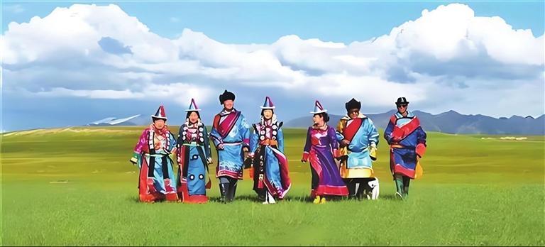 元、明時(shí)期蒙古族進(jìn)入甘肅,后來又經(jīng)過各類遷徙、文化交流與改變,為適應(yīng)寒旱牧區(qū)的生活環(huán)境和放牧騎獵的生活方式需要,蒙古族服裝多為寬大的長袍、長坎肩、腰帶、帽子、靴子,有男女區(qū)別、長幼區(qū)別、季節(jié)區(qū)別、節(jié)日與日常的區(qū)別,最為盛大的當(dāng)屬婚慶服飾。