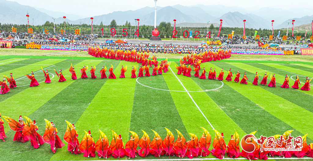 8月13日,甘肅省張掖市肅南裕固族自治縣萬(wàn)名群眾身著節(jié)日的盛裝,齊聚在索朗格賽馬場(chǎng)上,展開主題為“感恩奮進(jìn)七十載·同心共富新時(shí)代”的歌舞表演,感謝偉大的中國(guó)共產(chǎn)黨,謳歌美好的新生活。