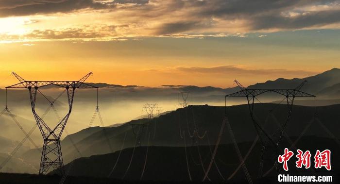 8月14日晚,蘭州市榆中縣馬坡鄉(xiāng),夕陽(yáng)在云海里翻滾,映照大地和村莊城鎮(zhèn),美不勝收。圖為云海日落籠罩黛青色山脈。丁永睿 攝