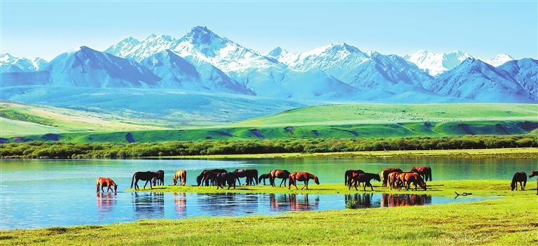 盛夏時(shí)節(jié),祁連山北麓的萬畝草場上,水草豐美似玉毯,駿馬颯沓如流星。