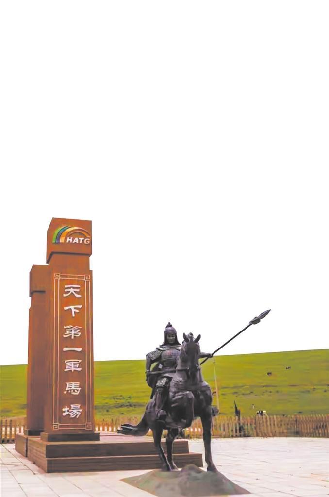 在碧草連天的谷地,當(dāng)?shù)芈糜尾块T(mén)擺放了一組白馬的大型雕塑,栩栩如生,它們要么仰天長(zhǎng)嘶,要么低首撫弄地上的青草,還有的彼此耳鬢廝磨,像是親密的戀人。