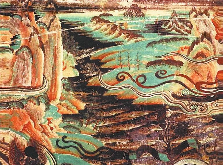 莫高窟第172窟 青綠山水畫(局部) 盛唐