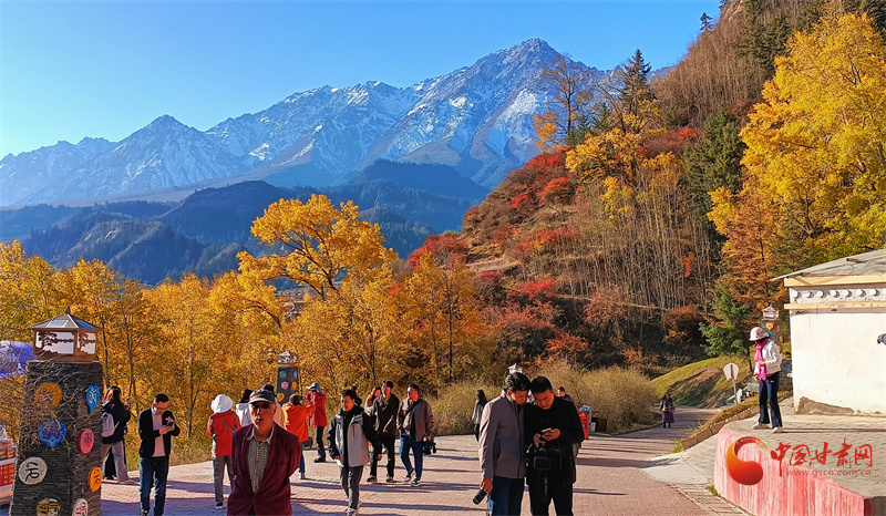 雪山之下,層林盡染,秋日的馬蹄寺美不勝收,裕固歌聲從北寺傳來,身著裕固服飾的歌者為游客帶來最炫民族風(fēng)。
