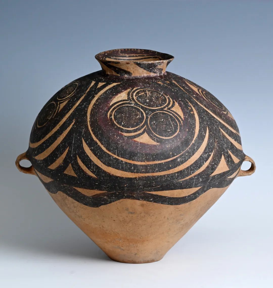 馬家窯文化創(chuàng)造了大批彩陶藝術(shù)精品,被譽(yù)為新石器時代彩陶之冠。形式優(yōu)美的漩渦紋是馬家窯類型的典型代表作,精美的半山類型彩陶又被公認(rèn)為馬家窯文化的巔峰階段,這一時期的彩陶器形勻稱圓潤,紋樣采用黑紅兩色繪制,更加繁麗精致,器具造型和圖案渾然一體,給人帶來賞心悅目的美感享受。