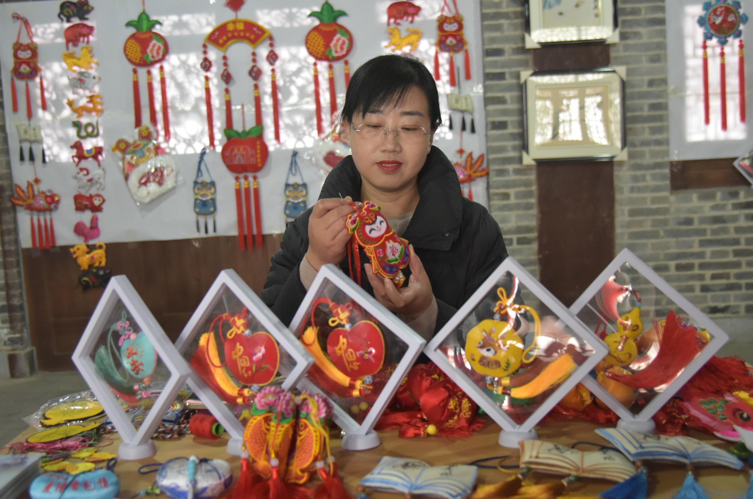 除了剪紙,鎮(zhèn)原縣香包、刺繡、書法等傳統(tǒng)文化藝術(shù)氛圍也很濃厚,深受廣大群眾喜愛(ài)。在文化一條街,十幾家書畫、香包、刺繡工作室緊挨,組成了一條文化長(zhǎng)廊,除了銷售文創(chuàng)產(chǎn)品外,還承擔(dān)著非遺文化傳承和技藝培訓(xùn),熱鬧而又成氣候。“作為一名非遺傳承人,不僅要把自己的香包刺繡產(chǎn)品設(shè)計(jì)好、做精致,更重要的是要把這門技藝教給更多的人,讓香包、刺繡這門技藝更好地傳承下去。”慶陽(yáng)香包刺繡非物質(zhì)文化遺產(chǎn)傳承人任艷艷說(shuō),自己在文化一條街已經(jīng)開店近十年了,帶出了很多巧媳婦巧婆婆,還不時(shí)受邀在縣內(nèi)外進(jìn)行培訓(xùn)指導(dǎo)。