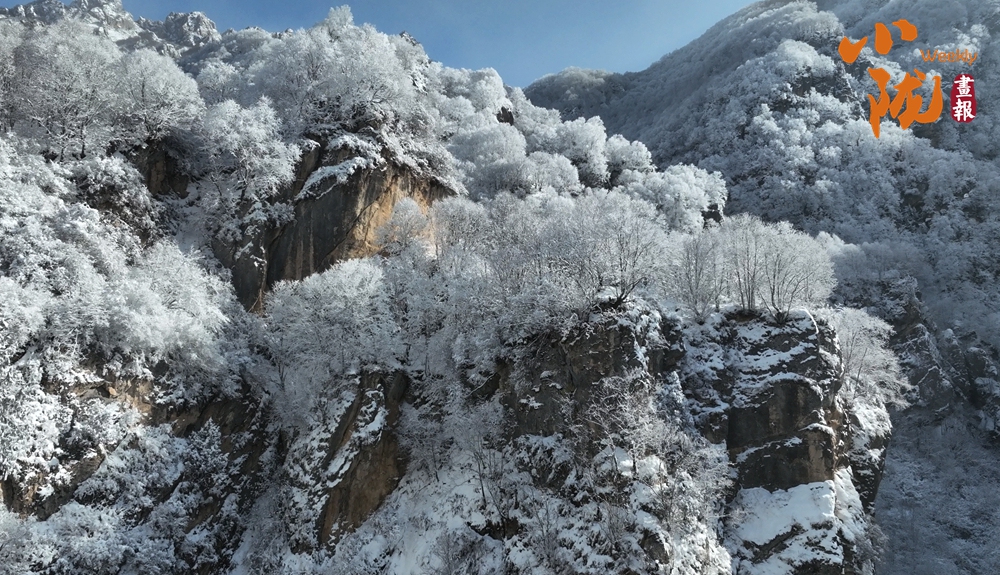 山巒樹木披上“銀裝”,霧凇就像無(wú)數(shù)潔白的花朵開在枝頭,玲瓏剔透,仿佛是冬天給予太子山的一份禮物。