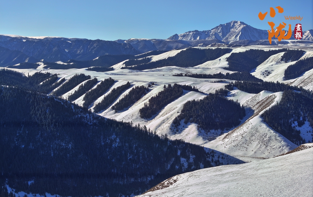 蒼茫草原,皚皚雪峰,松林相互映襯,構(gòu)成一幅美麗的冬日畫(huà)卷。