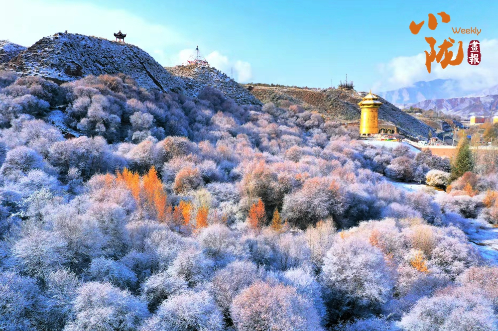 祁連山下,被譽(yù)為“空中草原”的康樂(lè)草原段披上了銀裝,皓然一色,如詩(shī)如畫(huà)。