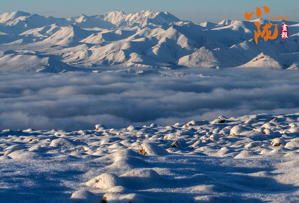 藍(lán)天如洗,鋪滿(mǎn)白雪的草原,與群山相映,蒼茫無(wú)際,呈現(xiàn)出安然素美的意境。